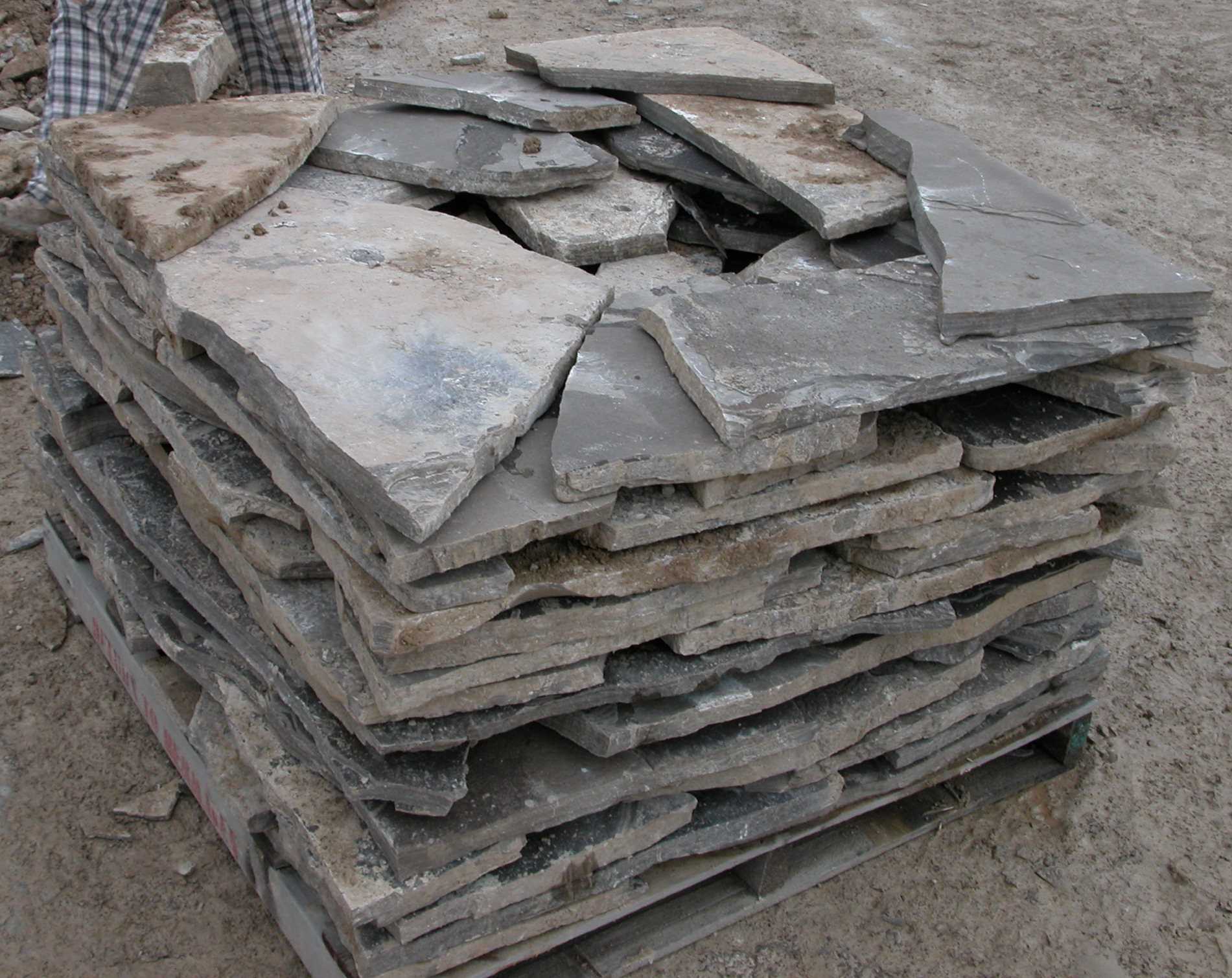 Chocolate/Red Limestone Skids are 2 ton each and are random sizes with a thickness of 1 1/2-2".